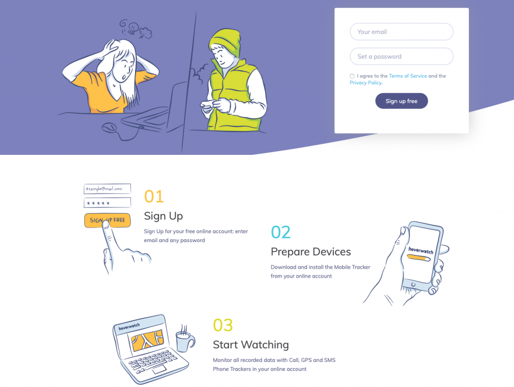 Step 1:For tracking a device, first sign up for using this phone tracker or you can also log in if you already have an account on the hoverwatch.